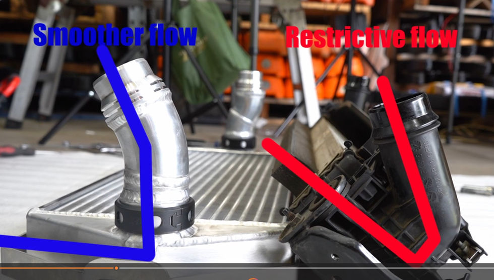 The piping is designed to take the shortest possible route with minimal Entry Angles and silicon joiners. The HDi CLAMP minimizes silicon steps allowing for a bigger smoother effective airflow area, less turbulence and pressure drop.